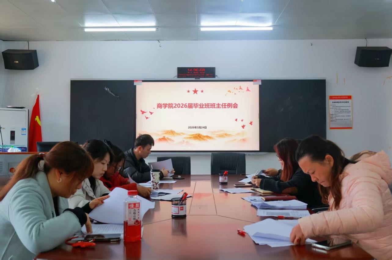 为扎实推进2026届毕业生就业服务工作,切实保障毕业生平稳有序毕业,3月24日,商学院在1307会议室召开2026届毕业班班主任工作例会,商学院党总支副书记李骞、商学院辅导员胡婷婷参会。会议由商学院党总支副书记谢超主持。